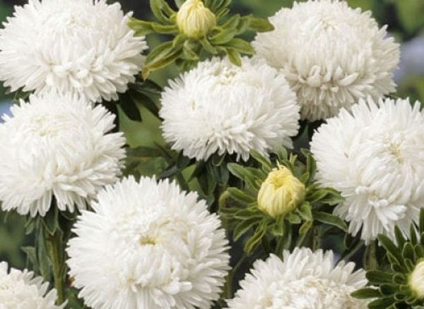 Семена астры "Белоснежка" высевают для оформления садового участка великолепными кустами с крупными белоснежными цветами. Высота культуры достигает около 65-75 см. В ширину кустик раскидывается на 40 см. Густомахровые соцветия диаметром 9-12 см радуют глаз с июня до августа. Высевают семена астры "Белоснежка" на рассаду в марте. Пикируют, когда появляется первая пара настоящих листочков. В мае растения пересаживают на постоянное место. Участок выбирают с легкой почвой, защищенный от ветра, солнечный или частично освещенный. Полив необходим лишь в период сильной засухи.