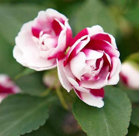 Рассада Бальзамина (Импатиенс) Уоллера Фиеста Бонита Парпл Страйп (Fiesta Bonita Purple Stripe) предназначена для высадки в цветник, выращивания в вазонах, кашпо. Главное достоинство сорта – обильное и продолжительное цветение. Уже в июне на кустиках раскрываются первые махровые бутоны. Шелковистые лепестки окрашены ярко, в белый и вишнево-красный цвет. Цветение длится до 6 месяцев в домашних условиях, в открытом грунте – до первых заморозков.