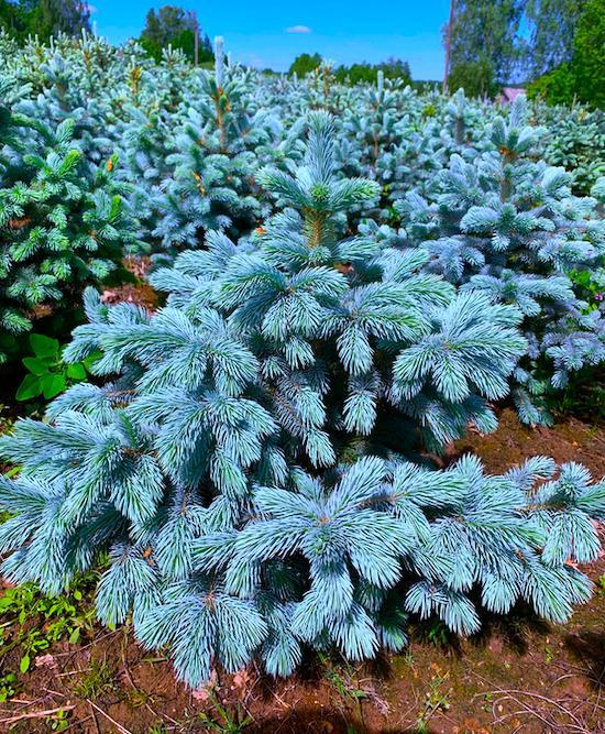 Крупномеры ели Супер Блю Сидлинг вечнозеленые, поэтому очень эффектно смотрятся на приусадебном участке. Часто используются для посадки вдоль дорожек или возле заборов.