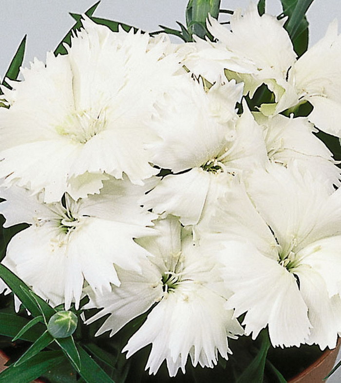 Гвоздика Diana White - это изысканное растение с белоснежными цветками, которые радуют глаз своей красотой. Ее стебель достигает высоты 15-20 см, что делает ее идеальным выбором для групповых посадок. Листья гвоздики имеют форму, напоминающую стрелу, что добавляет этому растению особый шарм.