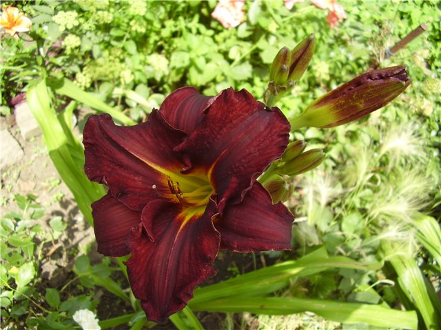 Окраска цветка : темно-вишневый с желтым горлом
