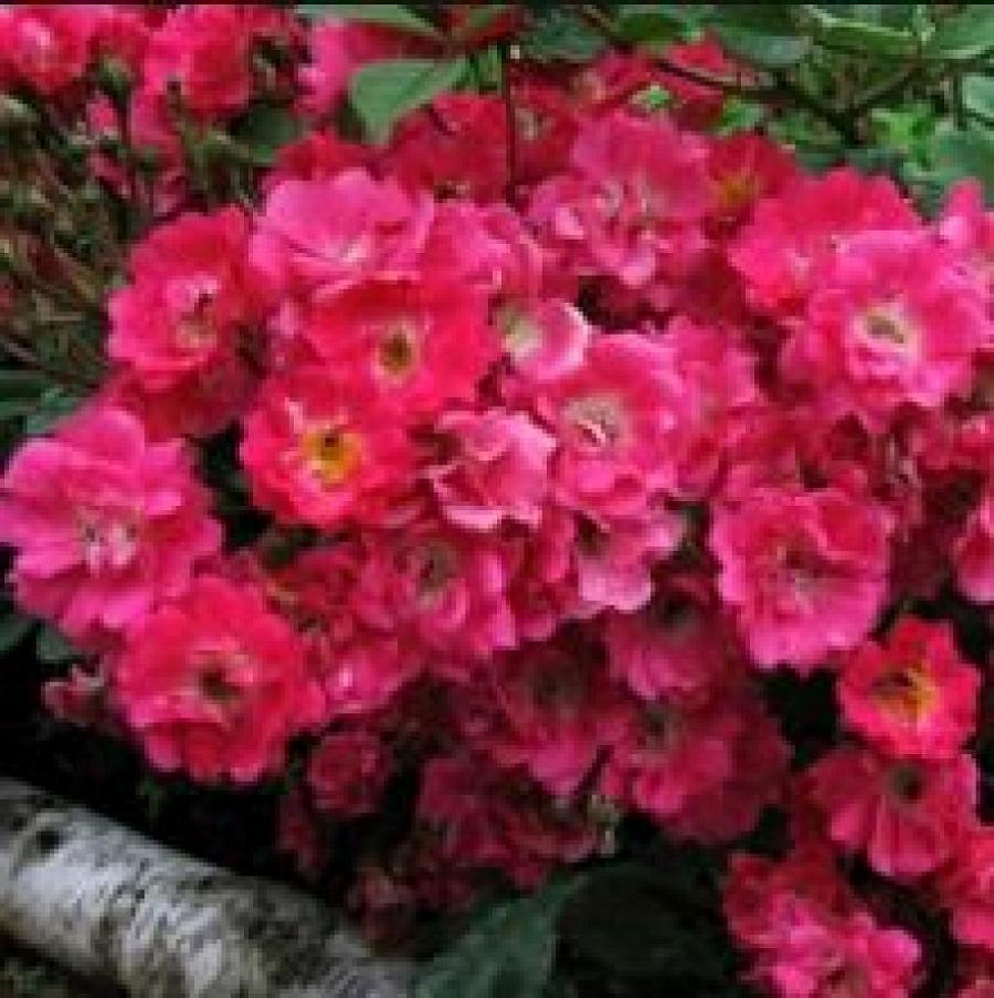 Саженцы розы полиантовой Орлеанс Роуз (Orleans Rose) неприхотливый сорт с изысканными карминно-красными цветами с желтыми серединками, выведенный именитыми Орлеанскими селекционерами. Главная особенность Розы Орлеана – густота соцветий (до 20 штук на побеге) и необычная форма цветков, напоминающая герань. Форма куста компактная, неплохо растет в ширину. Максимальная высота 80 см. Крона покрыта декоративной зеленой листвой, но взрослые крупномеры особенно эффектны в период цветения, когда под ковром из цветов почти не видно зелени. Особенности посадки розы Орлеанс Роуз: