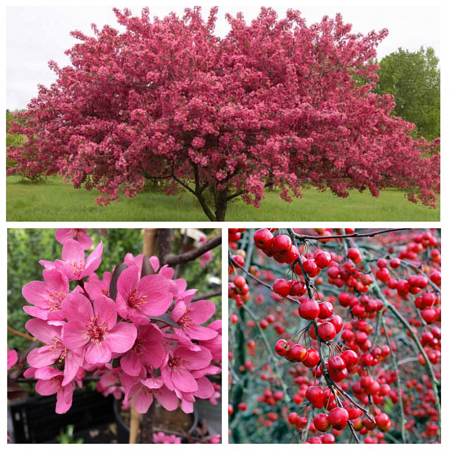 Саженцы яблони декоративной Прайри Файр относятся к декоративным многолетним деревьям. Сорт подходит для групповых посадок. Яблоню используют для озеленения участков. Саженцы рекомендуется высаживать на солнце или в полутени. Лучше всего приживается на суглинистых плодородных грунтах. Высота дерева до 4 метров. Крона округлой формы. В диаметре достигает 2 метров. Листья сразу после распускания красного оттенка, постепенно приобретают зеленый окрас. Цветки насыщенного розового оттенка. Во время цветения дерево все усыпано ароматными соцветиями.